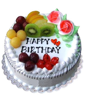 • 8寸鮮奶水果蛋糕,中心放各色時令水果,扇形巧克力插片