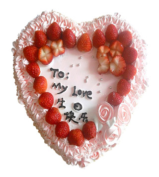 • 8寸心形水果鮮奶蛋糕,3朵奶油玫瑰花及時令水果。