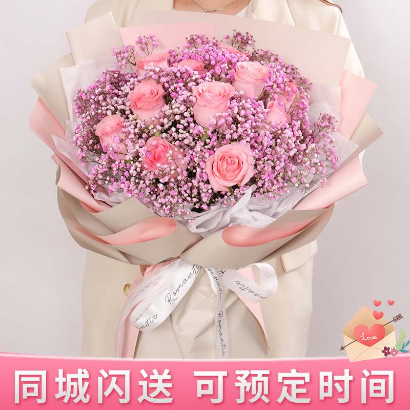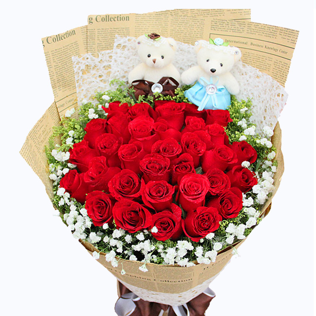 • 紅玫瑰11枝,滿天星、綠葉豐滿+8寸奶油蛋糕