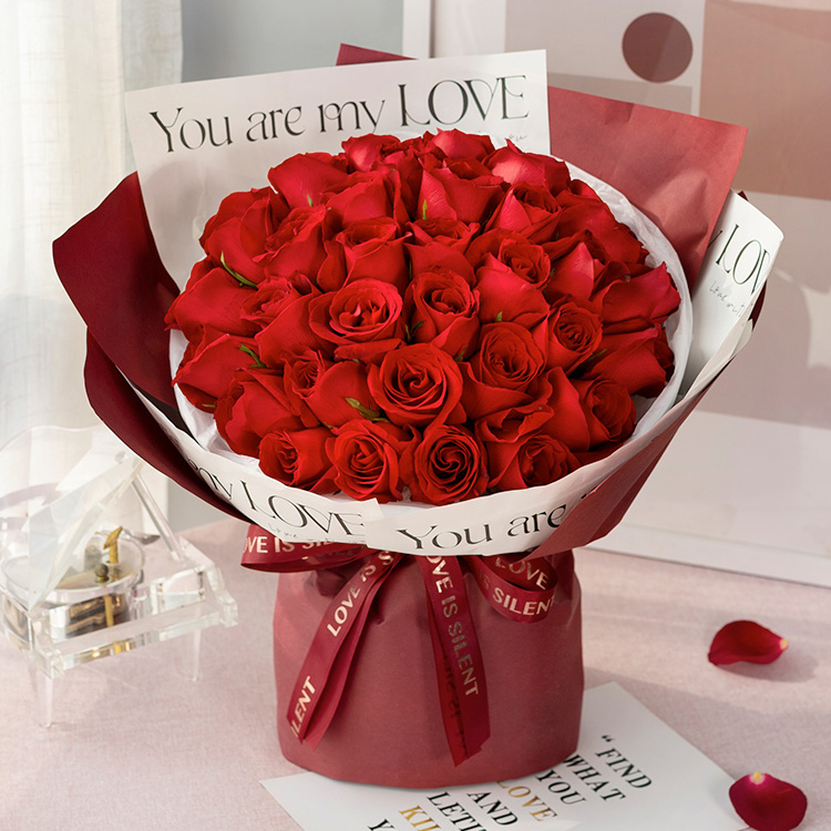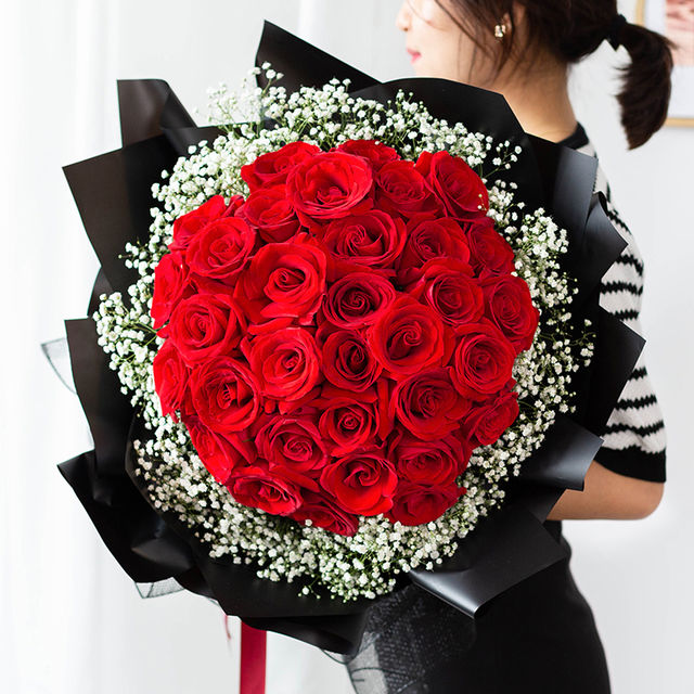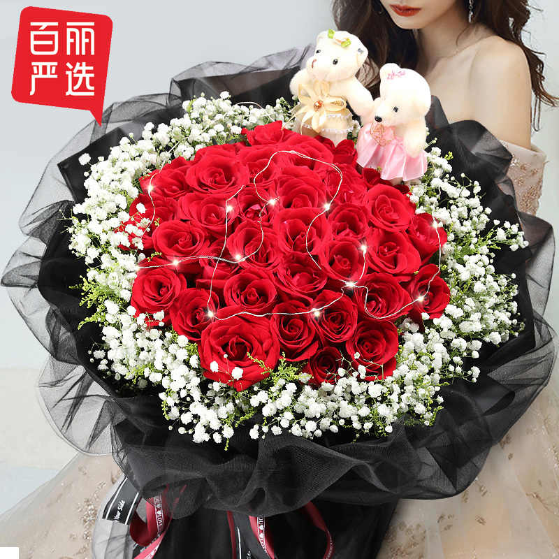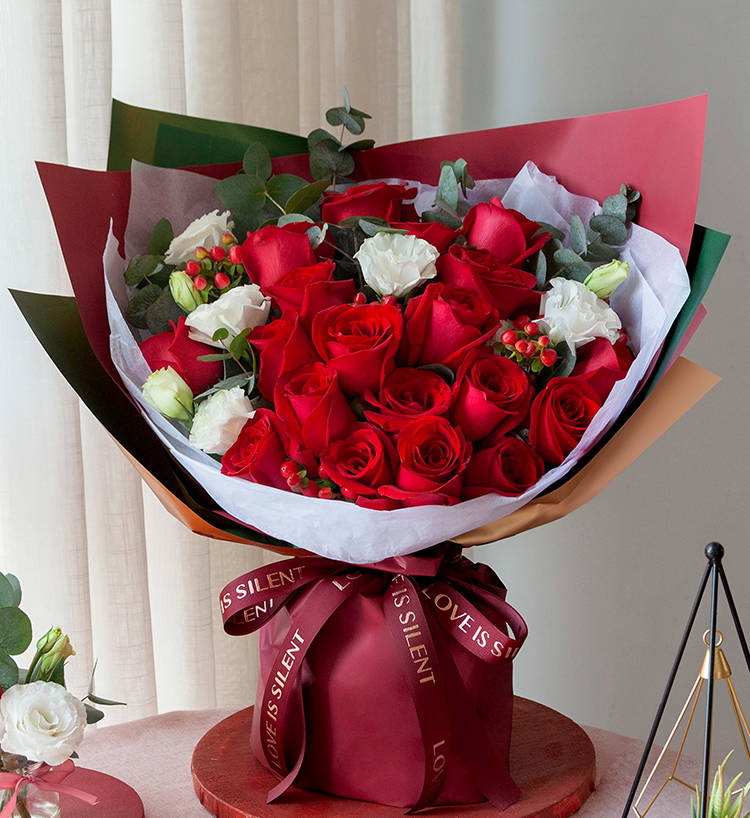 • 【11枝頂級紅玫瑰緊密居中,滿天星豐滿外圍】+【8寸巧克力蛋糕】