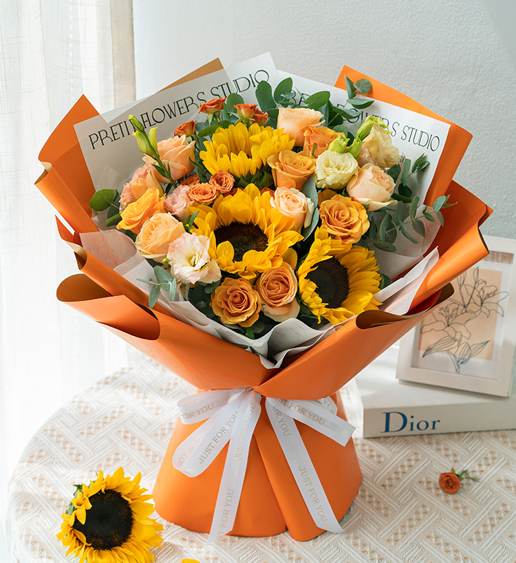 • 【6枝紅玫瑰,搭配黃鶯、巴西葉】+ 【8寸水果蛋糕】